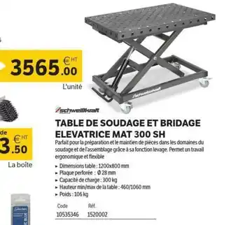 Offre Table de soudage et bridage elevatrice mat 300 sh chez DomPro