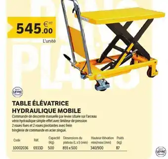 Table élévatrice hydraulique mobile offres et promotions en ligne chez DomPro