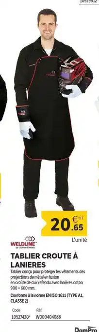Actuellement en offre chez DomPro : WELDLINE Tablier croute à lanieres ✅ Valable du 17-02 au 17-04.
