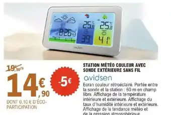 Y a-t-il une promotion sur AVIDSEN Station météo couleur avec sonde extérieure sans fil la semaine prochaine chez E.Leclerc Brico ?
