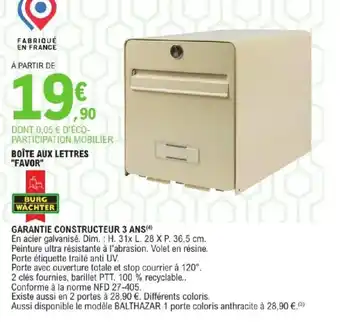 Actuellement en offre chez E.Leclerc Brico : Boîte aux lettres favor ✅ Valable du 27-01 au 7-02.