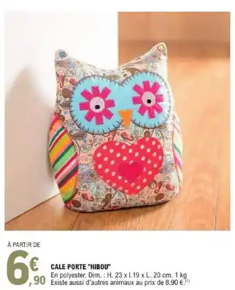 En plus de l'offre Cale porte hibou, E.Leclerc Brico propose une large gamme de produits. Consultez le Catalogue E.Leclerc Brico hebdomadaire pour découvrir les meilleures offres et promotions. En plus de Cale porte hibou, il y a aussi : Cale porte hibou, Hibou & Le cale-nuque / peluche.