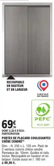 Offre Dim - portes de placard coulissantes chene ceribre chez E.Leclerc Brico