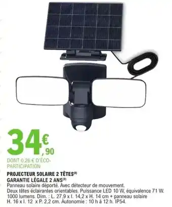 Offre Dim - projecteur solaire 2 têtes garamite legalale 2 ans chez E.Leclerc Brico
