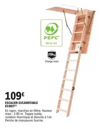 Actuellement en offre chez E.Leclerc Brico : Escalier escamotable ecokit ✅ Valable du 6-01 au 31-12.