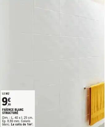 Actuellement en offre chez E.Leclerc Brico : Faïence blanc structuré ✅ Valable du 7-01 au 31-12.