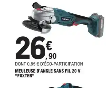 Actuellement en offre chez E.Leclerc Brico : FOXTER Meuleuse d'angle sans fil 20 v ✅ Valable du 27-01 au 7-02.