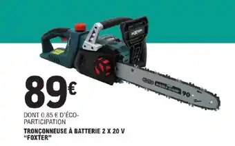 Actuellement en offre chez E.Leclerc Brico : FOXTER Tronçonneuse à batterie 2 x 20 v ✅ Valable du 27-01 au 7-02.