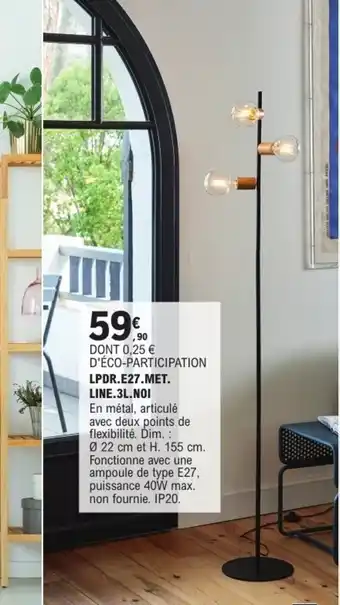 Actuellement en offre chez E.Leclerc Brico : Lpdr.e27.met. line.3l.noi ✅ Valable du 20-01 au 21-02.