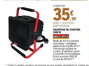 Actuellement en offre chez E.Leclerc Brico : MECAFER Chauffage de chantier 2000 w ✅ Valable du 27-01 au 7-02.