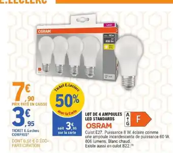 OSRAM Lot de 4 ampoules led standards : offres et promos E.Leclerc Brico à découvrir
