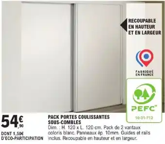 Actuellement en offre chez E.Leclerc Brico : Pack portes coulissantes sous-combles ✅ Valable du 7-01 au 31-12.
