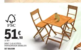 En plus de l'offre SET BALCON, E.Leclerc Brico propose une large gamme de produits. Consultez le Catalogue E.Leclerc Brico hebdomadaire pour découvrir les meilleures offres et promotions. En plus de SET BALCON, il y a aussi : Set balcon sydney, SET BALCON 3 PIÈCES & Hyba set de balcon bali.