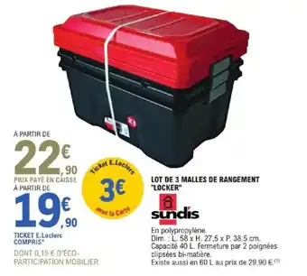 Actuellement en offre chez E.Leclerc Brico : SUNDIS Lot de 3 malles de rangement locker ✅ Valable du 27-01 au 7-02.