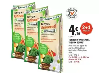 Actuellement en offre chez E.Leclerc Brico : Tous - terreau universel beaux jours ✅ Valable du 27-01 au 14-02.
