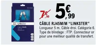 Actuellement en offre chez E.Leclerc Espace Culturel : LINKSTER Câble rj45m/m ✅ Valable du 27-01 au 8-02.