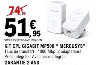 Actuellement en offre chez E.Leclerc Espace Culturel : MERCUSYS Kit cpl gigabit mp500 ✅ Valable du 27-01 au 8-02.