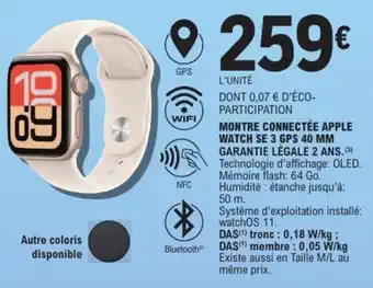 Actuellement en offre chez E.Leclerc Espace Culturel : Montre connectée apple watch se 3 gps 40 mm ✅ Valable du 3-02 au 14-02.