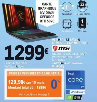 Actuellement en offre chez E.Leclerc Espace Culturel : Pc portable gaming msi ✅ Valable du 3-02 au 14-02.