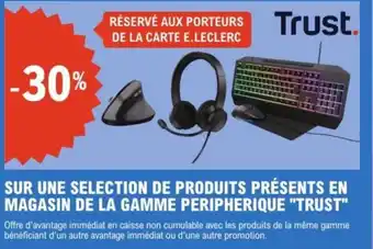 SUR UNE SELECTION DE PRODUITS PRÉSENTS EN MAGASIN DE LA GAMME PERIPHERIQUE TRUST : offres et promos E.Leclerc Espace Culturel à découvrir