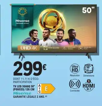Actuellement en offre chez E.Leclerc Espace Culturel : Tv led 50a6q 50" hisense ✅ Valable du 3-02 au 14-02.