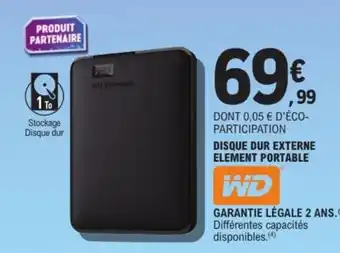 Offre WD Disque dur externe element portable chez E.Leclerc Espace Culturel