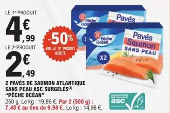 Offre 2 pavés de saumon atlantique sans peau asc surgelés pêche océan chez E.Leclerc Express