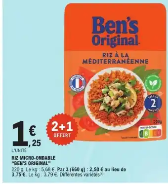 Offre BEN'S ORIGINAL Riz micro-ondable chez E.Leclerc Express