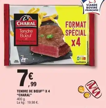 En plus de l'offre Charal - tendre de bœuf, E.Leclerc Express propose une large gamme de produits. Consultez le Catalogue E.Leclerc Express hebdomadaire pour découvrir les meilleures offres et promotions. En plus de Charal - tendre de bœuf, il y a aussi : Charal - tendre de boeuf, Charal - tendre de boeuf x 4 & CHARAL Tendre de boeuf ou bifteck de boeuf ou caractere de boeuf.