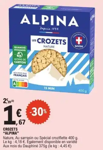 Crozets alpina offres et promotions en ligne chez E.Leclerc Express