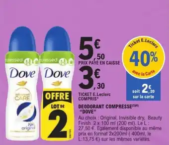 Deodorant compresse dove : offres et promos E.Leclerc Express à découvrir