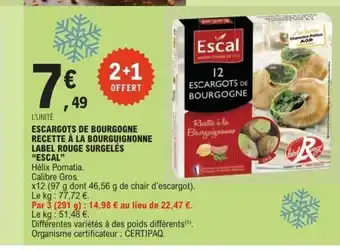 Actuellement en offre chez E.Leclerc Express : ESCAL Escargots de bourgogne recette à la bourguignonne label rouge surgelés ✅ Valable du 23-12 au 3-01.
