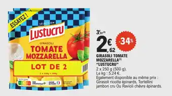 Le prix de l'offre Girasoli tomate mozzarella lustucru se trouve également en haut de la page, ainsi que la date à laquelle l'offre est disponible. Vous pouvez également vérifier les prix dans le Catalogue E.Leclerc Express actuel ou sur le site Internet de E.Leclerc Express. Les offres vous permettent d'acheter les produits E.Leclerc Express au prix le plus bas.