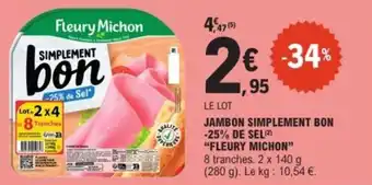 Offre Jambon simplement bon -25% de sel fleury michon chez E.Leclerc Express