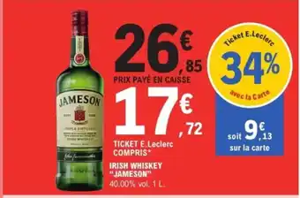 JAMESON Irish whiskey : offres et promos E.Leclerc Express à découvrir