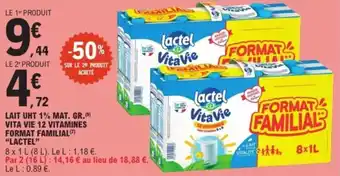 Lait uht 1% mat. gr. vita vie 12 vitamines format familial lactel : offres et promos E.Leclerc Express à découvrir