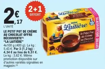 Actuellement en offre chez E.Leclerc Express : Le petit pot de crème au chocolat offre découverte la laitière ✅ Valable du 6-01 au 31-01.
