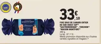 Offre MAISON MONTFORT Foie gras de canard entier du sud-ouest igp gastronomique" torchon chez E.Leclerc Express