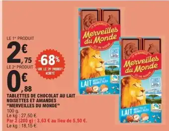 Actuellement en offre chez E.Leclerc Express : MERVEILLES DU MONDE Tablettes de chocolat au lait noisettes et amandes ✅ Valable du 23-12 au 3-01.