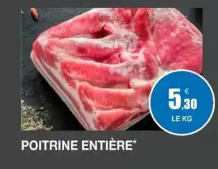 En plus de l'offre Poitrine entière, E.Leclerc Express propose une large gamme de produits. Consultez le Catalogue E.Leclerc Express hebdomadaire pour découvrir les meilleures offres et promotions. En plus de Poitrine entière, il y a aussi : Poitrine entière avec os, Poitrine entière avec os & Porc : Poitrine Entière Avec Os.