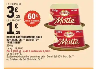 Actuellement en offre chez E.Leclerc Express : PRÉSIDENT Beurre gastronomique doux 82% mat. gr. la motte ✅ Valable du 16-12 au 27-12.