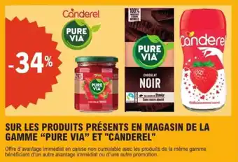 Sur les produits présents en magasin de la gamme pure via et canderel