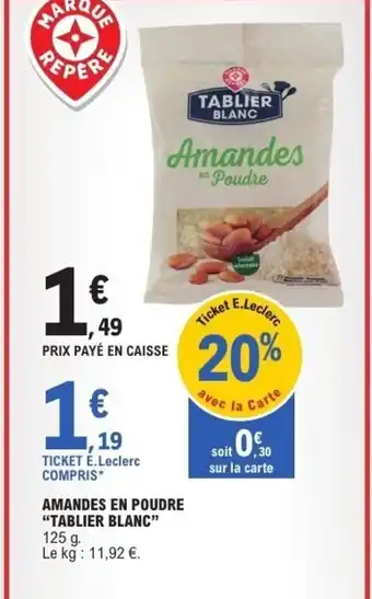 Offre TABLIER BLANC Amandes en poudre chez E.Leclerc Express