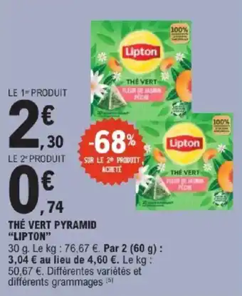 Actuellement en offre chez E.Leclerc Express : Thé vert pyramid lipton ✅ Valable du 10-02 au 21-02.