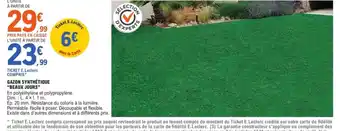 Actuellement en offre chez E.Leclerc Jardi : BEAUX JOURS Gazon synthétique ✅ Valable du 17-02 au 28-02.