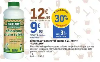 Actuellement en offre chez E.Leclerc Jardi : Désherbant concentré jardin & allées clairland ✅ Valable du 17-02 au 28-02.