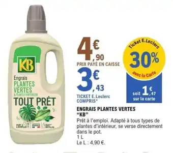 Réductions actuelles de Engrais plantes vertes kb chez E.Leclerc Jardi du 17-02 au 15-03.