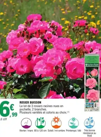 En plus de l'offre Rosier buisson, E.Leclerc Jardi propose une large gamme de produits. Consultez le Catalogue E.Leclerc Jardi hebdomadaire pour découvrir les meilleures offres et promotions. En plus de Rosier buisson, il y a aussi : Rosier buisson, Rosier buisson & Rosier buisson collection générale.