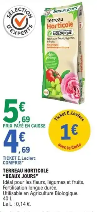Offre Terreau horticole beaux jours chez E.Leclerc Jardi