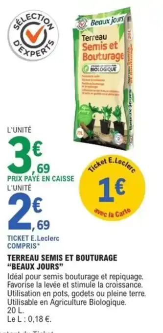 Actuellement en offre chez E.Leclerc Jardi : Terreau semis et bouturage beaux jours ✅ Valable du 17-02 au 28-02.
